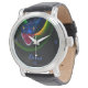 Legal relógio, com cobra de néon abstrato, com cabeça azul e olhos amarelos, contra fundo preto. Personalize o texto azul para atender às suas necessidades. Ideia personalizada de presente de excelente.