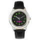 Make time pop with this bold and educational kids watch! Featuring a sleek black face with neon green hour numerals and pink minute markers, this watch is designed to help children master analog time with confidence. The clearly labeled “HOUR” and “MINUTE” hands make it ideal for early learners, while the vibrant color scheme adds a fun, modern twist.