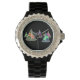 Ilustração gráfica de veleiros coloridos nas ondas do oceano ao nascer do sol. Escolha seu estilo de relógio favorito para este design. Excelente de presente para amantes da vela.