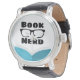 Ilustração de um par de óculos e de um livro com leitura de texto: "Nerd de livro"