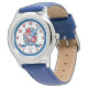 Nome da linha do solteiro da letra H, que significa cavaleiros herálsecos blindam os garotos, relógio de pulso. Estilo de cavaleiro blindado monograma com letra H chamada relógio numerado simples face perfeita para tons de vermelho, azul branco e cinza. Personalize com seu próprio nome e nome, significando um presente personalizado único e excelente, este exemplo é para nomes com a letra H e atualmente lê Harrison Son of Harry. Outros itens e nomes correspondentes estão disponíveis. Proteção única contra aves, coroa, estrela e letra A, arte gráfica, investigação de nomes, redação e design, por Sarah Trett. www.sarahtrett.com para www.mylittleeden.com