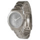 Personalize facilmente este design de relógio chic moderno com brilho bonito prateado em um fundo metálico escovado prateado.
