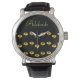 Relógio Nome personalizado girassóis amarelos em preto