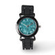 Adicione sua própria foto para criar um presente exclusivo de relógio de pulso. Foto de luz tocando no fundo de uma piscina de natação. A cor predominante é aqua mais que azul.