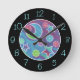 Um céu noturno de cor brilhante com estrelas brilhantes e lua listrada. Relógio com um design personalizável roxo, rosa, azul, verde e preto para você personalizar com seu próprio texto, imagens e ideias. Outras opções de estilo disponíveis. Imagem criada de um desenho de lápis de cor original por Jess Perry.