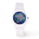 Uma imagem fractal multicolorida (rosa, verde, azul, amarela), que abre espaço sobre um fundo azul escuro. Uma interpretação de como o céu noturno pode parecer a um xamã siberiano enquanto em transe se comunicando com os espíritos.