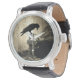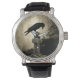 O corvo é gótico e ele está num relógio escuro que é tão misterioso e que parece tão distintamente gótico.