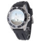 Este desenho apresenta um farol branco, verde e preto sobre o mar. O céu é azul com algumas nuvens. Casas brancas com telhados verdes cercando o farol. Esta design está disponível em mulheres, homens e relógios infantis.