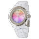 O presente da noiva de noiva favorita a noiva. Design glamouroso com bracelete branco e face de discagem colorida arco-íris gradiente. Adicione seu próprio nome personalizado e data, opcionalmente. Modelo de tipografia elegante com monograma personalizado. Presentes únicos para a tripulação de noiva, comitiva, madrinha de casamento, equipe, tribo, posse, florista, amigos, família, etc. Diâmetro em torno de 29 mm, precinta em torno de 18 mm. Moderno, não há face numérica com cores femininas como rosa e roxo. Bezel com pedras de cristal. O pulso luxuoso vigia as moças da moda.