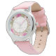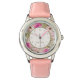 Um relógio de criança bonito com flores cor-de-rosa e folhas verdes de sábio. Personalize com um nome.