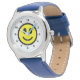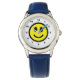 Relógio O rosto feliz da coroa azul de couro