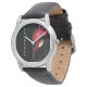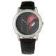 SEM MEDO dos homens, com um galo preto sobre fundo preto, relógio de couro preto.