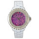 Relógio Olhal Branca de Inamel Rhinestone Rosa