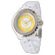 Faça-o brilhar e brilhar com o Observatório do Rhinestone das Mulheres! Feito com uma face realçada do Rhinestone e uma pulseira de liga de esmalte preto ou branco, este relógio é a adição em moda que seu pulso perdeu. Personalize o rosto com seu nome e designs para um estilo e brilhar além do tempo. Material de relógio de pulso feminino: Bezel: Metal com face cristalina: correia de liga: Dimensões da liga de montagem: Face: 1,14" de diâmetro Precinta: 8" x 0,7" Caso: 1,6" de diâmetro Peso: analógico de 3 mãos 0,254 lb Japão Cheio de 4-Papel de carta Impressão personalizada na face p fechamento Resistência da água: até 3 ATM (98,4 pés) 1 ano fabricantes de bateria de garantia limitada Este produto é recomendado para mais de 13 anos