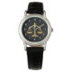 Um relógio com uma imagem de ouro é dimensionado sobre um fundo preto. Simples e elegante.