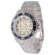 Este relógio masculino tem uma design moderna do século médio de ovais e círculos em laranja, ouro, chalé e turquesa num campo de branco. Quer o mesmo design com cores diferentes? Me mande mensagem.