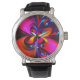 Abstrato Floral Moderno Art Vermelho Azul Padrão #07 Relógio