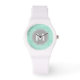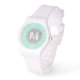 Um padrão-chave grego giro, bonito, moderno, geométrico, em verde-menta e branco, com um quadro de etiqueta circular de cinza para a letra inicial do monograma personalizado. Um impressão de padrão legal, feminino e elegante com um toque pessoal que fará uma tendência e um dom único para garotas/mulheres.