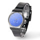 Padrão de malha geométrica azul escuro Monograma Watch. Personalize com seu nome e inicial personalizados. Design do padrão geométrico de gradiente azul.