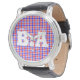 Botão Iniciais Personalizáveis. Padrão de gingham de cor mista vermelho e azul. Clique em B.A para personalizar.