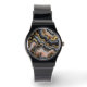 Melhore a sua roupa com este relógio de pulso elegante, que apresenta um impressionante padrão de arte de ondas de mármore preto, branco, coral rosa, vermelho e dourado. Este relógio faz um presente ideal para si mesmo ou para alguém especial, e serve como uma bela adição à sua moda do dia a dia.