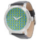 Relógio Padrão geométrico do Abstrato retrô em azul e verd