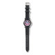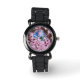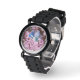 Dois periquitos amorosos combinados com flores de abacaxi cor-de-rosa macio fazem disso um relógio colorido de amante de pássaros.