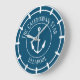 Relógio de parede de um navio ou barco, com o nome do navio e o porto de origem ou porto de base. Design inclui um motivo de âncora.