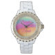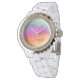 Beautiful rhinestone white enamel watch featuring Paradise Beach design - inspired by lyrics to one of our songs