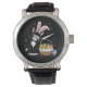 Relógio Páscoa Negra Gato Tuxedo Rabbit Coelho Ovos