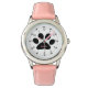 Um relógio de pata de cão fofo personalizado com um fundo rosa. Por favor, veja fotos. Você será capaz de facilmente "personalizar esta modelo" com o nome da criança através da pata do cão.