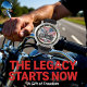 This distinctive watch face features a prominent American flag waving in the background, behind a detailed black motorcycle. Large, stylized wings extend from the motorcycle's side, with additional red and blue feathered wings at the bottom. The overall design emphasizes patriotism and a love for motorcycling, with clear silver numbers and watch hands for timekeeping.