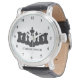Um relógio clássico de xadrez super legal, com peças pretas do Rei, bispos, cavaleiros e gralhas. Este relógio pode ser personalizado com seu nome!
