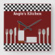 Relógio Personalizado de Utensílios da Cozinha de Checkerboard Preta e Branca