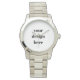 Estilo: Relógio de pulseiras de prata sobredimensionado Unisex Mantenha o tempo perfeito com um relógio de pulseira de tamanho superior Unisex personalizável do eWatchFactory. Preparado para seu texto, trabalho de arte, designs ou fotos, você pode fazer um relógio de excelente para si mesmo ou criar um como presente! Material de relógio de pulso da Unisex: Face: Precinta de aço inoxidável: Dimensões de aço inoxidável: face: 1,24" de diâmetro Precinta: 8,5" x 0,82" Caso: 1,57" de diâmetro Peso: analógico de 3 mãos de 0,319 lb Japão Quartz® cor de Cheio impressão personalizada na face Foldover clasp Resistência da água: até 3 ATM (ATM) 98,4 pés) 1 ano fabricantes com garantia limitada Bateria incluída Este produto é recomendado para mais de 13 anos