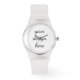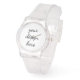 Estilo: Silício Rosa Esportivo das Mulheres Assista O presente perfeito para as meninas esportivas que você ama, este clássico relógio esportivo é um acessório excelente para qualquer atividade. Feita com uma banda de relógio de silício durável e confortável, o rosto pode ser personalizado com texto e designs para corresponder a qualquer personagem e estilo esportivo. Relógio de pulso feminino Material: Strap: Silicon Case: Dimensões do Silício: Face: 1,18" de diâmetro Strap: 9,5" x 0,79" Caso: 1,57" de diâmetro Peso: 0,082 lb analógico de 3 mãos Japão Quartz® Cheio impressão personalizada na face Disponível em 2 cores - Fecho branco e cor-de-rosa Somente fabricantes Bateria de garantia limitada incluída Este produto é recomendado para mais de 13 anos