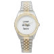 Estilo: Unisex Duas Pontas de Bracelete Observando Perfeito para o veste do dia a dia, este relógio de prata e ouro duas tonalidades pode ser personalizado para corresponder ao seu estilo. Adicione seus designs e texto favoritos para personalizá-los para uma incrível declaração de estilo! Material: Precinta: Alloy Case: Dimensões da liga: Face: 1,16" de diâmetro Precinta: 7,99" x 0,31" Caso: 1,37" de diâmetro Peso: 0,148 lb analógico 3-mão Japão Impressão personalizada a cor do Cheio Quartz® na face Dobro seguro sobre o fecho do fecho da água: Até 3 ATM (98,4 pés) (1 ano fabricantes com garantia limitada Bateria incluída Este produto é recomendado para mais de 13 anos