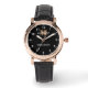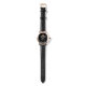 Minimalist and refined, this personalized women’s watch features a sleek black dial with an elegant initial and name accent. The rose-gold case provides a touch of luxury, beautifully balanced by a crisp white leather strap for a clean, contemporary look.