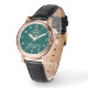 Showcase timeless elegance with this personalized women’s watch featuring a deep emerald dial adorned with a regal crest and refined lettering. The rose-gold case paired with a crisp white leather strap creates a luxurious balance of classic and modern style.