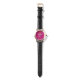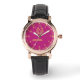 Elevate your style with this personalized women’s watch featuring a bold magenta dial and elegant golden laurel design. The rose-gold case adds a touch of luxury, perfectly complemented by a chic white leather strap for a modern, feminine look.