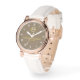 White Letters Brown Background Monogram Custom Minimalist Boho Couple Name Unique Gift Watch with Roman Numbers