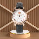 Elevate your look with this elegant women’s watch featuring a crisp white dial and a regal monogram emblem accented in red and gold. The rose-gold case and white leather strap create a luxurious, refined appearance suitable for both everyday wear and special occasions.