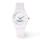 Ziffernblatt - Illustration eines Pferdes in Aquarelle und roter Tinte auf weißem Untergrund. Ein Schimmel wälzt sich im Sand.