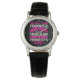 This wall clock is a powerful tribute to the strength of a truck driver's wife. Against a black background with a vivid pink rim, it features two pink semi-trucks arranged in a mirrored design, with a distressed pink stripe between them. The bold text "THE ONLY THING TOUGHER THAN A TRUCKER IS A TRUCKER'S WIFE" is prominently displayed in white and pink, making a clear and heartfelt statement about her resilience.