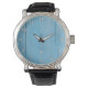 Este é um relógio de pulso de madeira pintada azul muito duro