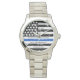 Celebre e mostre seu apreço a um excelente policial com este Thin Blue Line Police Retirement Watch - design de bandeira americana em cores da Polícia, design angustiada. Perfeito para presentes de aniversário da polícia, presentes de aposentadoria da polícia e prêmios de serviço. Personalize este relógio de aposentadoria policial com nome e crachá nº, anos de serviço e de serviço, departamento de polícia. COPYRIGHT © 2020 Judy Burrows, Black Dog Art - Todos Os Direitos Reservados. Polícia Azul Limpa Vigilância de Aposentação da Polícia