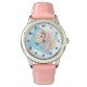 Há algo sobre meninas e cavalos, e qualquer garotinha adoraria esse relógio! A característica no centro é um retrato de um belo cavalo branco com decorações roxas lavandas em seu mano que flui. A imagem é colocada em um retângulo de borda azul pastel. Os números azuis mais escuros facilitam a leitura do relógio. Esta design parece excelente com várias cores de banda do pulso, também...olha para eles!