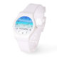 Um relógio personalizado com uma praia tropical cênica. Um belo mar de turquesa à distância e águas cristalinas acariciando uma praia arenosa. Um céu azul brilhante no fundo. Personalize com um nome.