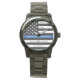 Celebre e mostre seu apreço a um excelente policial com este Thin Blue Line Retirement ou Anniversário da Polícia Vigia - design da bandeira americana na Polícia - cores em um design azul e preto moderno. Perfeito para prêmios de serviço e presentes de aposentadoria policial e aposentadoria polícia. Personalize este relógio de aposentadoria policial com nome e crachá nº, anos de serviço e de serviço, departamento de polícia. COPYRIGHT © 2020 Judy Burrows, Black Dog Art - Todos Os Direitos Reservados. Presente da Polícia Personalizado Thin Blue Line Watch