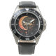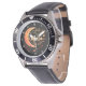 Relógio masculino de aço inoxidável com pulseira de couro preto